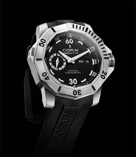 È in titanio il Corum Ammiral's Cup Deep Hull . Si tratta di un professionista subacqueo, impermeabile fino a 100 atmosfere e dotato di valvola per l'espulsione dell'elio sulla carrure. Il titanio della cassa riesce perfettamente ad alleggerire il peso dell'orologio, vista anche le dimensioni assolutamente importanti del diametro della cassa che raggiungono i 48 mm. Il movimento, che si fregia anche in questo caso del certificato del COSC, è una carica automatica (Cal. CO947).